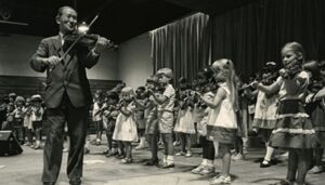The result of Suzuki's trip revolutionized how many American string teachers taught. The International Suzuki movement was born and five regional associations were created to help spread his teaching worldwide - The Suzuki Association of the Americas, The Pan Pacific Suzuki Association, the European Suzuki Association, The Asia Suzuki Association and Suzuki's founding school in Japan, The Talent Education Research Institute. Now there are many hundreds of thousands of children around the world who have learned to play instruments through the Suzuki Method. Through his teaching, Dr. Suzuki showed teachers and parents everywhere what children could do. He believed that hearing and playing great music helped children become good people with noble hearts. Dr. Suzuki hoped that these children would help bring peace and understanding to the world.