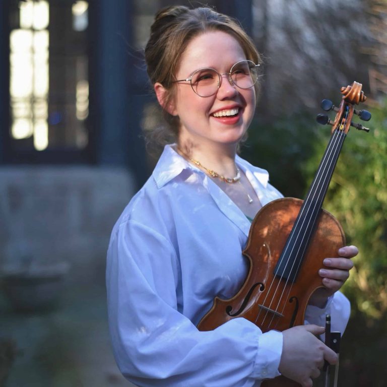 After high school, Erin went on to earn a Bachelor of Music in Violin Performance and Music Education from Butler University in Indianapolis Indiana, studying with Larry Shapiro and Melanie Clapies. During this time, Erin co-founded and developed the Glass City Chamber Music Competition in Toledo, Ohio, in order to help foster a competitive and motivational young musician community in the greater Toledo area. She also continued to teach privately on both violin and viola, and taught in both intermediate and high school orchestra settings to complete her degree in music education. It was one of her students here, a Suzuki student, who inspired her to further develop her Suzuki knowledge and move forward with her training.